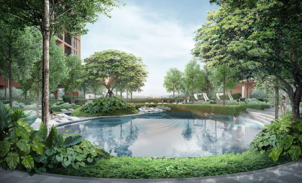 สระว่ายน้ำ บริเวณโพเดียม ระหว่างตึก C และ D