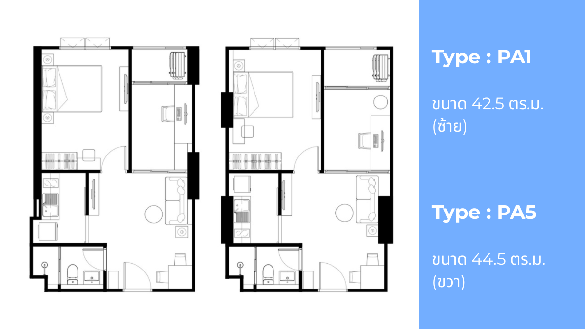 - แต่ Plan นี้มีให้เลือกถึง 6 Plan 42.5 ตร.ม. ถึง 44.5 ตร.ม. หลัก ๆ ก็จะต่างกันที่ความกว้างของห้อง Plus และรูปแบบการวางเสาโครงสร้าง ที่โผล่เข้ามาภายในห้อง ดังนั้นผมเดาว่าห้องตัวอย่าง เป็นห้องที่ขนาดใหญ่ที่สุด แนะนำให้สอบถามกับเซลล์ดี ๆ ว่าความกว้างส่วนต่าง ๆ ภายในห้องที่สนใจมีขนาดเท่าไหร่บ้าง หากเลือกไม่ละเอียด อาจจะดูสวยไม่เท่าห้องตัวอย่างนะครับ